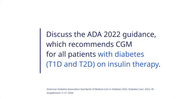CGM is now considered standard of care for people living with type 1 diabetes, and the current American Diabetes Association Standards now expand the cohort of patients suitable for CGM to include those with Type 2 diabetes receiving insulin treatment, as well as those with Type 1 diabetes.5 The expanded recommendations are due to growing evidence that CGM use can greatly enhance management for people with T2D patients receiving basal bolus or background and mealtime insulin.5